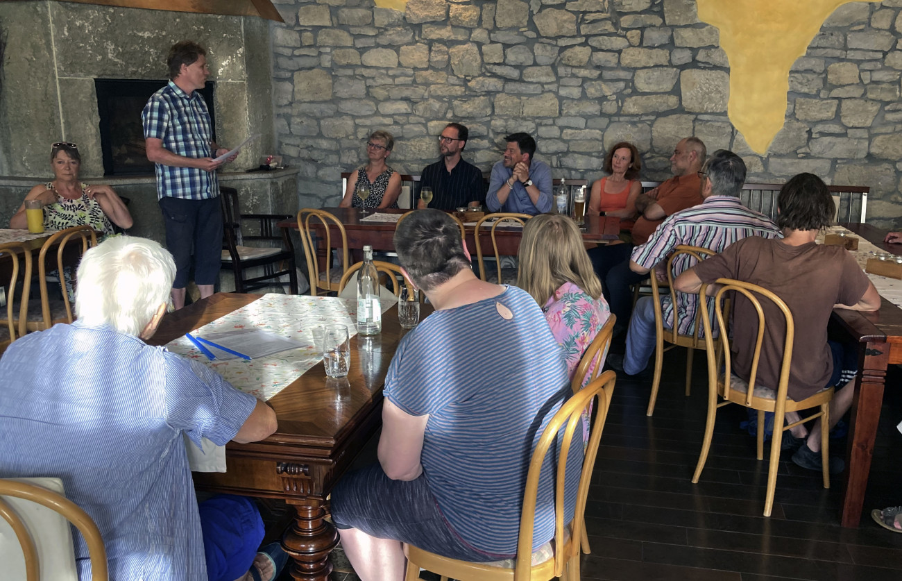 Dieser Frage stellten sich mit Susanne Cimander (Grüne), Gerda Hupp (SPD), Karl Kieselbach (Freie Wähler) und Sven Winzenhörlein (Grüne) vier Gemeinderatsmitglieder sowie Bürgermeister Alexander Knahn bei den „Ökumenischen Gesprächen über Gott und die Welt“ am 25. Juni in der Weinstube 3Hasenstab.